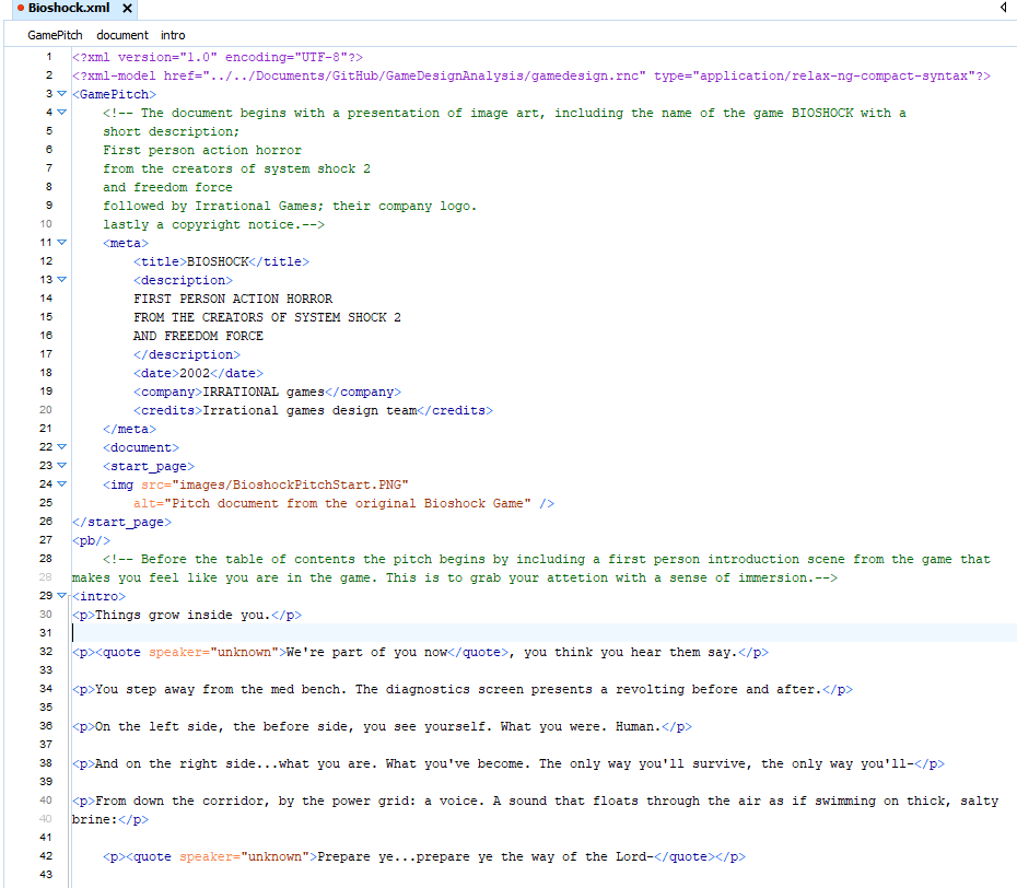 We also made great progress on the schema, making some adjustments as we progressed through the BioShock document.