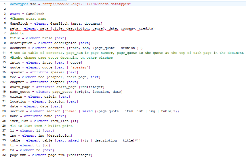 Added a huge change to the schema. We added a new section called Gameplay patterns in order to highlight different use of gameplay elements throughout the documents. We also did some minor tweaks to the structure in order to validate the new markups.