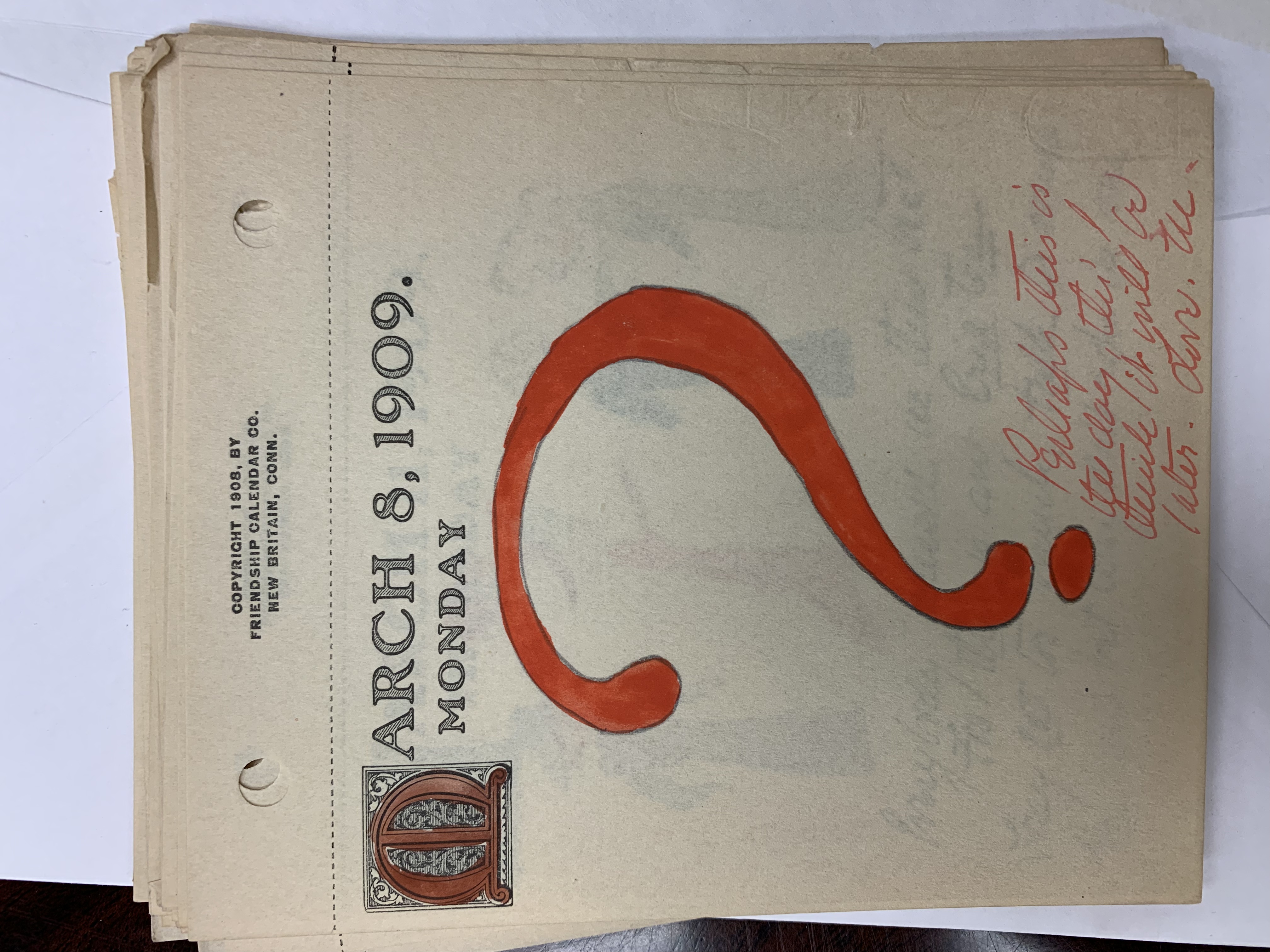 started. Specifically, they are a series of calendar sheets from the year 1909 on
